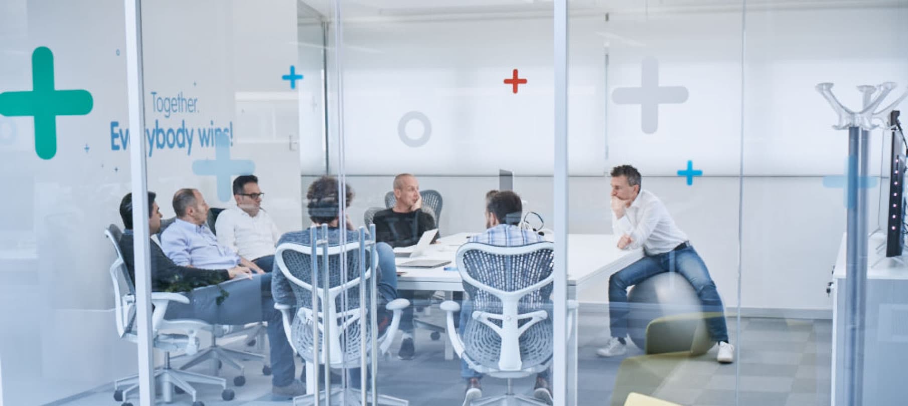 Our slogan is: “It’s always a matter of happy people”. It’s our purpose and, to keep it clearly in mind, we have written our motto huge on the wall.